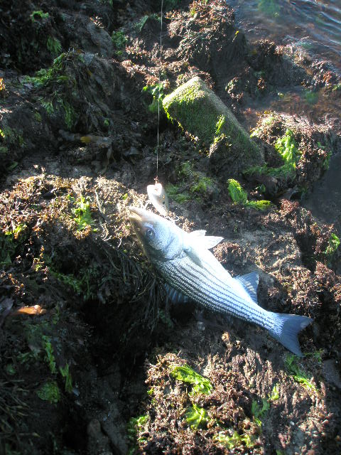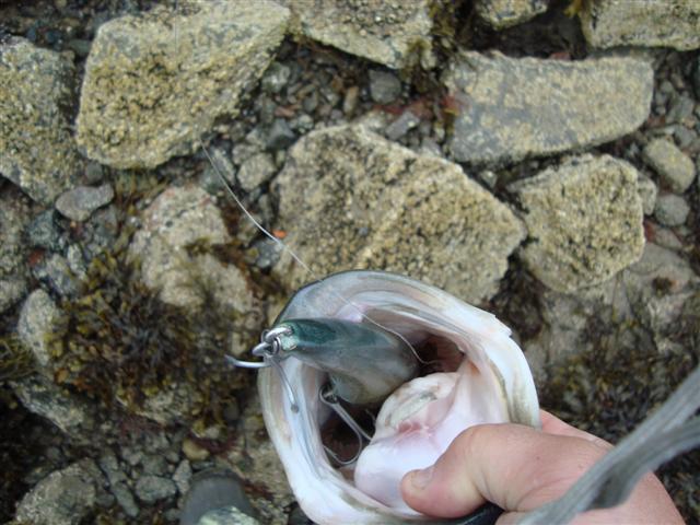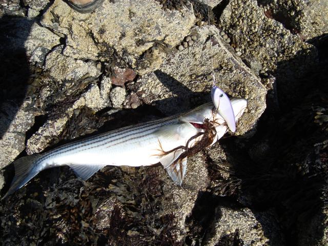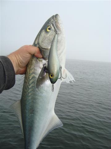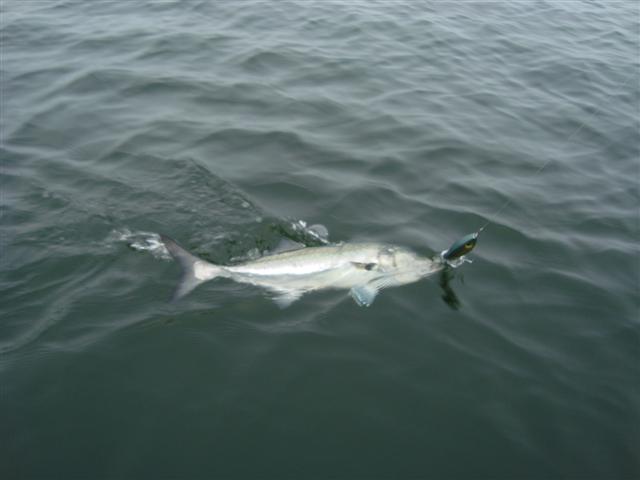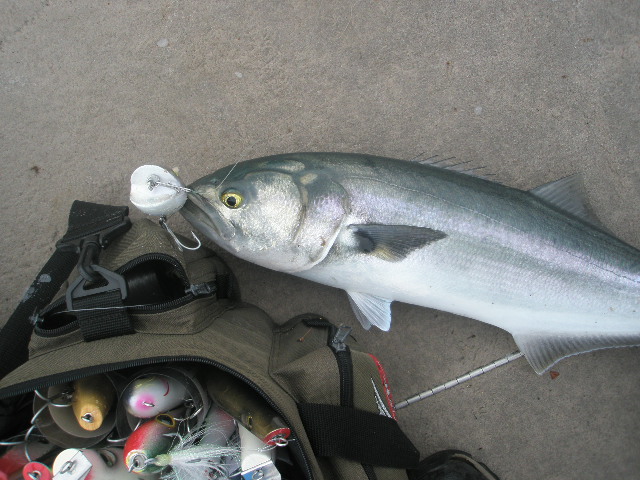 From last week. Taken on a DC custom 2.5 oz pencil. It was literally drawing fish to the surface while everything else was failing...no eels yet in 2009.....not sure how much longer I can hold out.....
