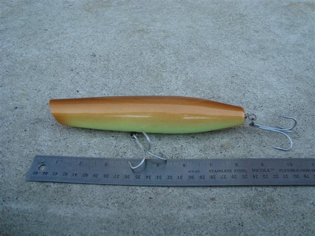 Finished up the last of my big stuff for awhile. The flaptail and pencil are white cedar and weigh 4 oz. The swimmers are 6 1/4 and weigh between 2 and 3 plus oz . I made them in several thicknesses. Will be bringing these to plugfest. Hope it still is a go.