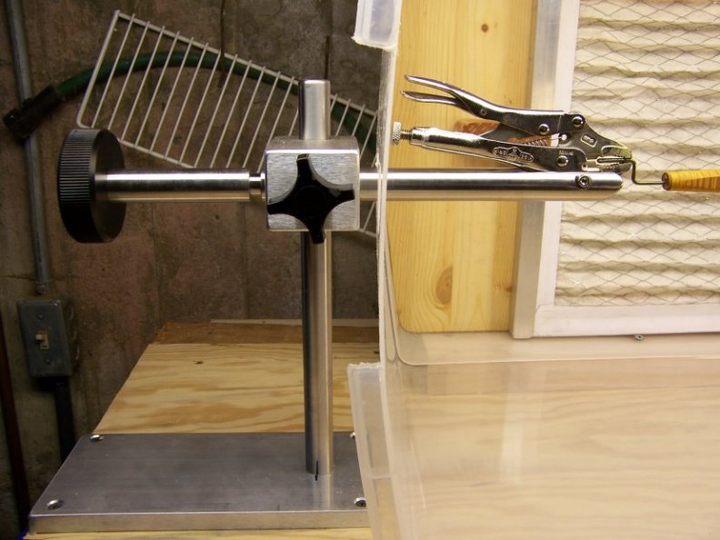 Here is a tool I made to hold the plug during the painting process. It rotates 360 and can be left at any angle needed.