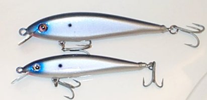 A few new ones from me. The two bomber clones are right at 1 1/2 oz. Similar action as a bomber and dive a couple of feet on retrieve. The one below these is also 1 1/2 oz, but tuned to stay on top. More of a Red Fin/Bomber action on top as it wakes. The other two (1 oz and 2 oz) dive 4-5 feet with a tight wiggle to them. Handle current well too.