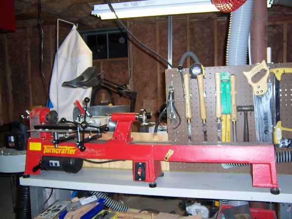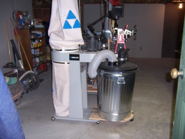 The lathe station and dust collector..