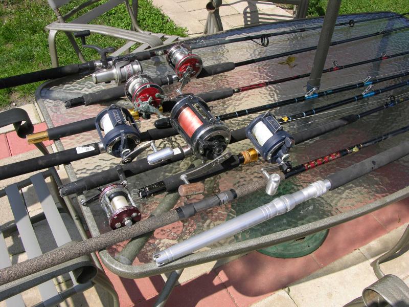 An assortment of stuff, 2 Wire line Penn HSP 113 setups, Canal stick, variety of rods and reels, plugs, etc. going for CHEAP CHEAP. Don't have the boat or the back anymore!