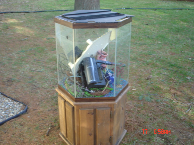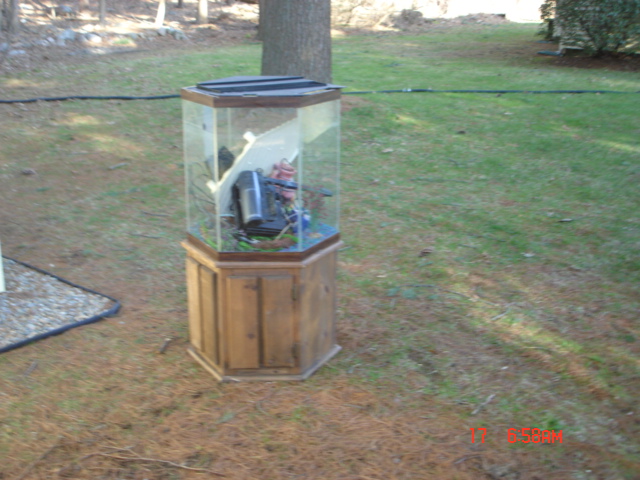 25" x 25" x25" = 50gal. stand, undergravel filter, cover , light and goodies. $125.00 or willing to trade.