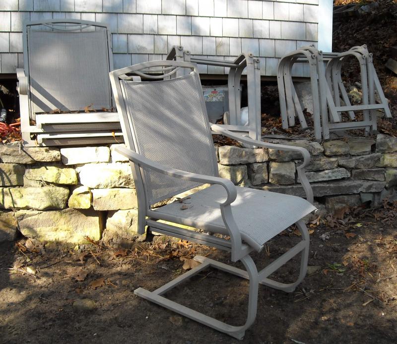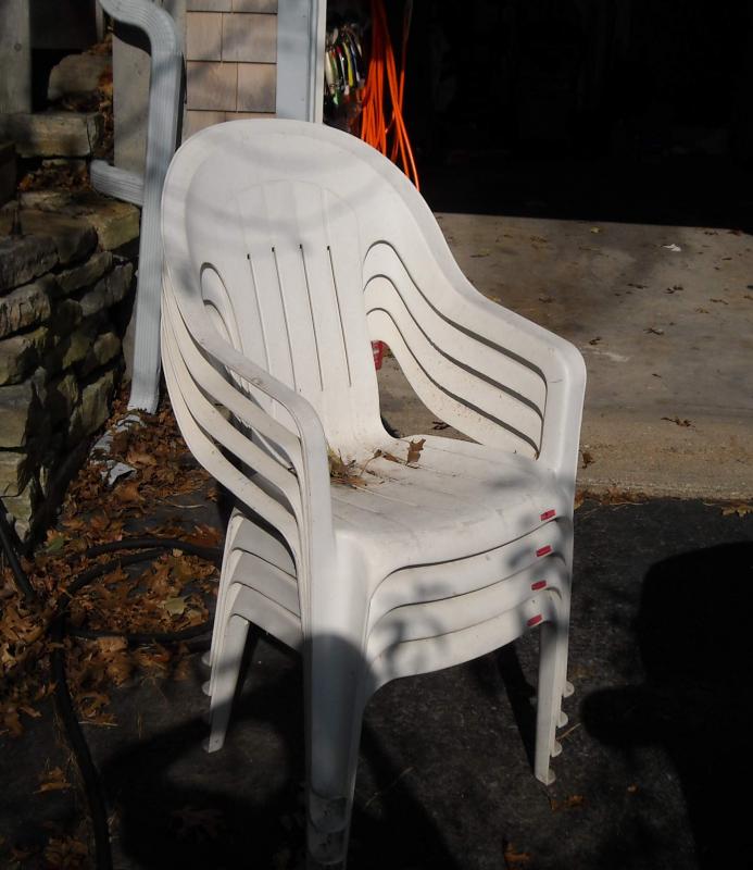 I also have 4 older rubbermade pvc chairs, they have been outside and need a washing with bleach to clean them up but are otherwise in good shape.