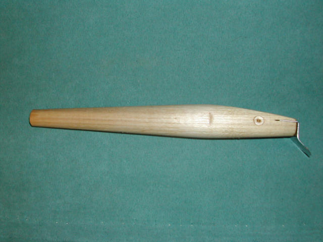 Between seeing Capesam's work and then a Danny Pinchney Sandeel plug on *bay, I was inspired to hit the basement last night. Here's what I came up with. It's about 1" long and 3/4" wide at the shoulder. Has an NJT #1 Lefty lip. Not sure aobut weights.