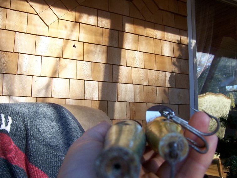 I am starting to dry run applying the lips to the goo goo eyes I am making and after looking at the 2 examples I have, thanks Pete, I have noticed that each one has the same lip but mounted in different locations as far as the distance it hangs below the body of the plug. They are also bent in different places in the lip too. Why? One plug seems to be a trolling plug and the smaller version seems to be a casting plug but i am no expert which is why I ask these questions. Is the action different with the location, a yes I would imagine. I am making the trolling plug so do you think I should copy the location of the lip on the troller.  Dah yeah I would think. If you notice the lip doesn't even hang below the body of the plug on the trolling plug which I find a little strange but maybe that is the swimming style of the plug. I have to admit I have never even seen one of these babies swim yet I am trying to make one  dumb I know but I don't own any so I am relying on your expertise to help me. After I make some and swim them from the boat next spring I will be able to make a more educated guess, but for now i am flying blind. It seems like a very straight forward simple plug. Just don't understand the lip location being so different on the 2 versions. Here are some photos to explain my questions