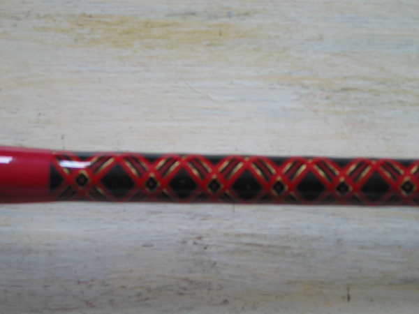 Lamiglas MB 114 3F cut 3" from the tip wrapped by CMS with a red and black wrap on honey colored blank.
