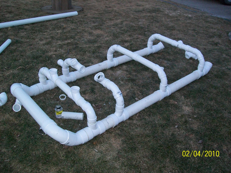 The front of the sled isn't finished I need to put on 2-45 degree fittings to give a blunt nose and between the two fittings will be a Tee going back to the main frame then put plywood on top of the base and place some sides on it.