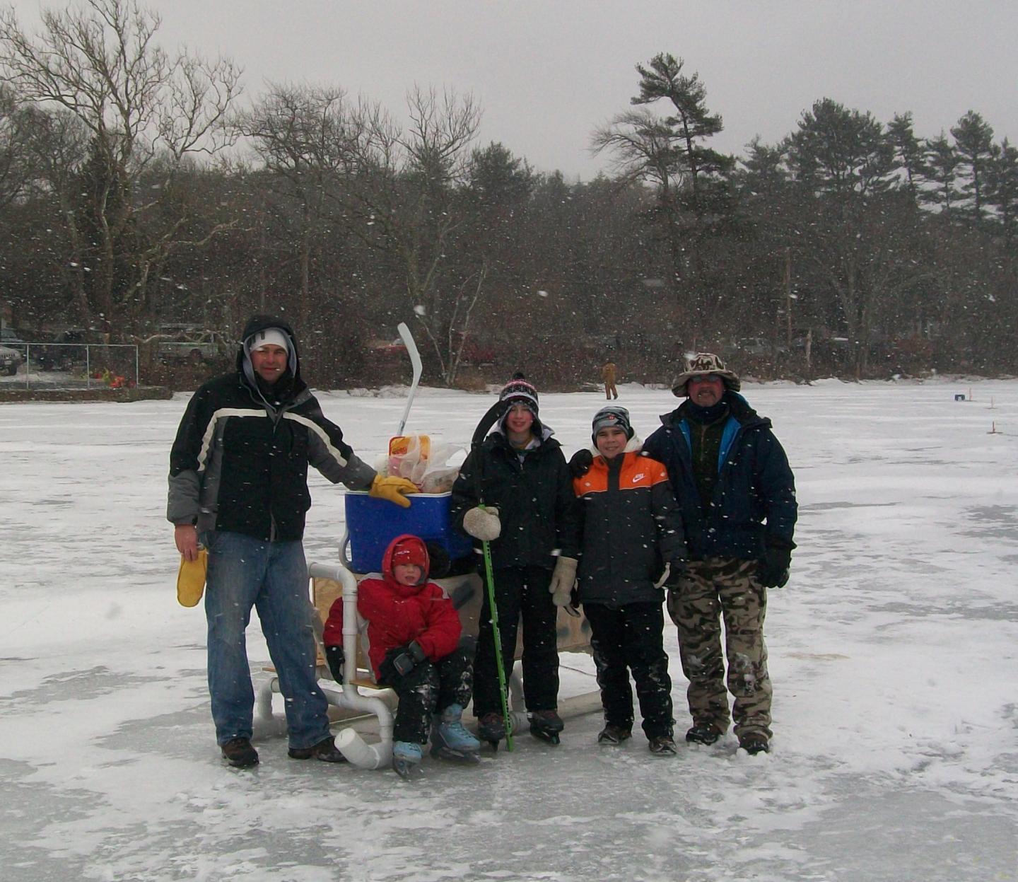 As for the fishing report.........There was eight of us and we didn't get a tap in 5 1/2 hrs.The snow squalls & wind kept up all morning & the temps musta been in the mid-lower teens,but the kids hung in there, they skated around playing with hockey sticks and tennis balls,and checking out other fishermen who were lucky enough to pull a fish through the ice.