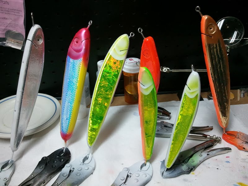 I've had repeated success on large fish (as in over 30#) with Eddy's small needle. It has gotten to the point were I consider it a "go to" plug. Eddy is buzy rebuilding his fishing cottage so he won't be making any more any time soon.......so I ripped him off.