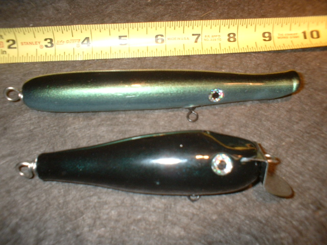 A pencil popper and a pikie. Pikie is all black and the pencil is black on the back fading to chamelion (sp) green to a light greenish silver belly.