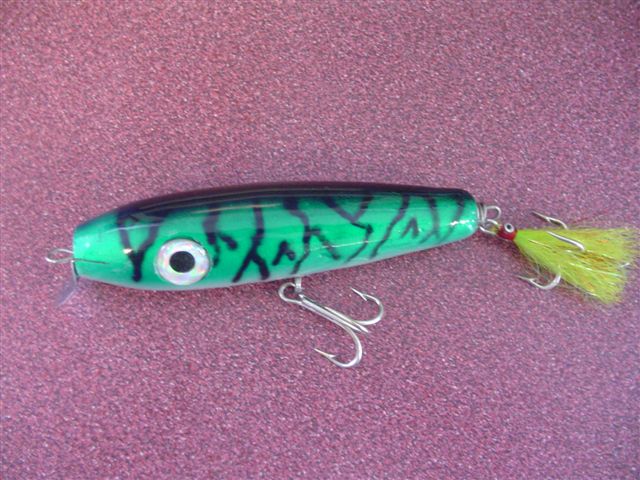 Nice.U know I like tails on the rear hook but no matter how far back u tie it on a treble hook they seem to foul.an I think bass are turned off by that.i still do it cause i like the tail.an plugs wit one belly hook.i think alot of times it gets pinned on a fish an holds the hole plug to ur quarry better than a siwash.just my 2 cents.
