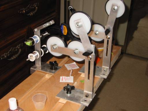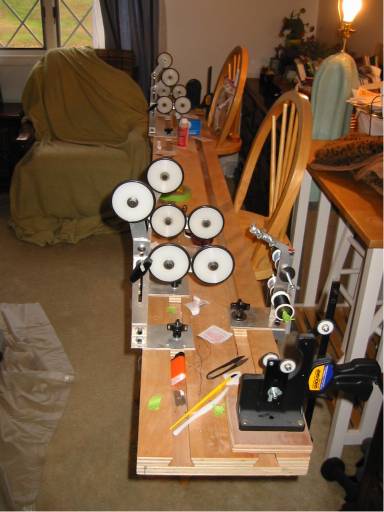 selling the rod building stand i bought from Bud8fan last year. he modeled it after the clemens lathe. the bed is wood with alluminum uprights. the bed is about 10' long or so. there is a motor and an upright to attatch it, i just never got around to hooking it up. it is a great set up, and i have turned out 8 or so rods on it. scored a clemens, so i don't need 3 rod building set ups. there used to be some pics either in here or the rod building forum of the set up if you want to see it, or Bud8 mights still have some too. i can get pics if you are seriously interested. PM me with an offer.