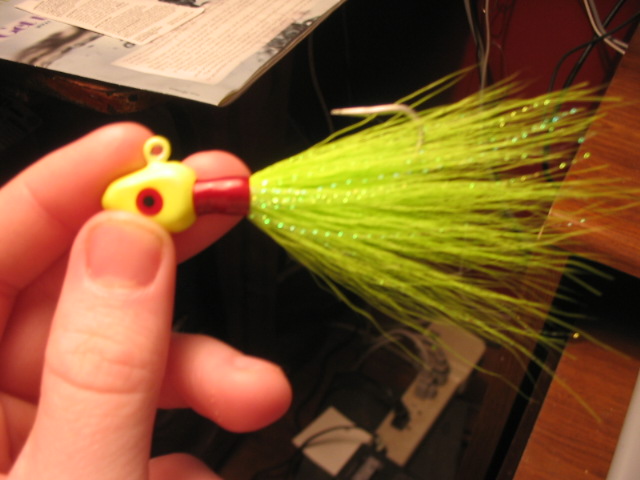 , so i took the jig heads and tossed some green bucktail and some flash and WA-LA here they are.