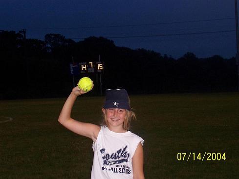 Here's a picture of one of last year's highlihgts --- 9/10 Allstars tournament where we (home team) beat a rival that no other SK girls team had. We were down, tied it in the bottom of the sixth, and came back again to win in the 7th. MY daughter pitched the closing inning. Notice the Rally Cap