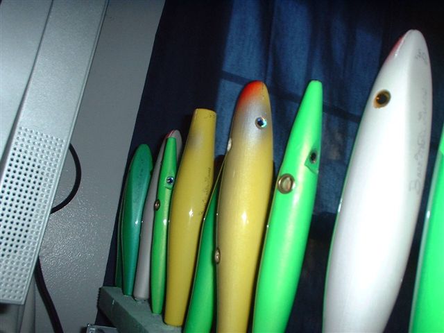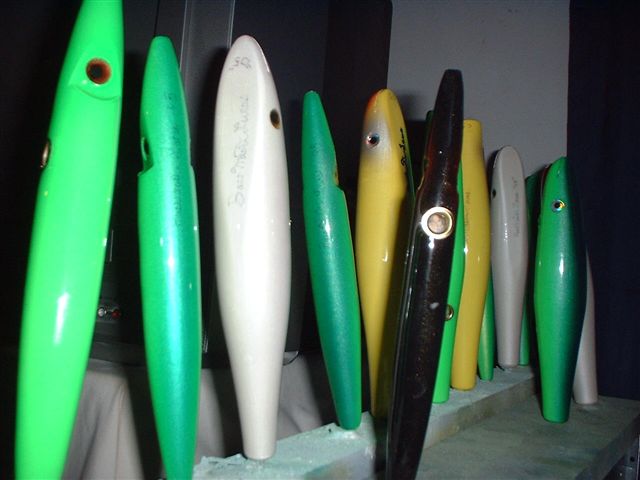 the needles have been tweaked with 3 to 5 colors on some along with the surfsters. got a mess o fish on them and these are the plugs made from the master last year.