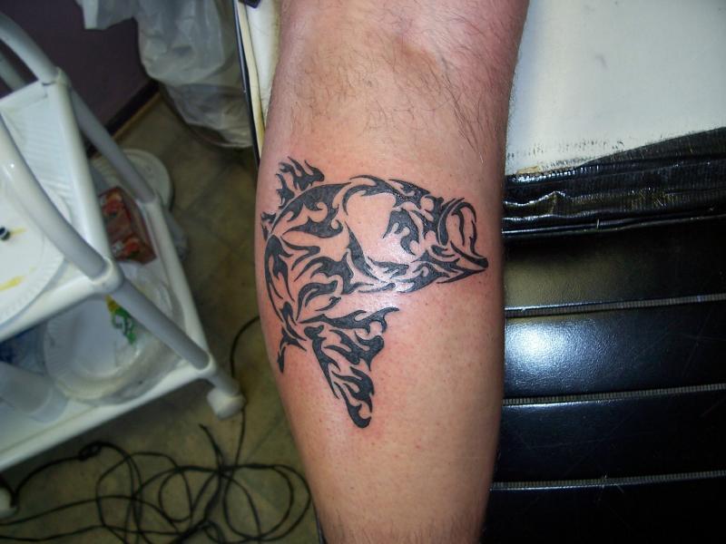 A tribal bass sillouette would be cool......I've got some space on my ankle for that
