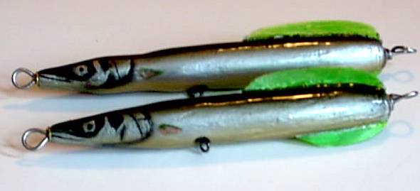6inch 2oz Sand eels. Made from the scrap blanks #^^^^^^^^^^^& gave away at plugfest. I plan to test these up at the Cape soon.
