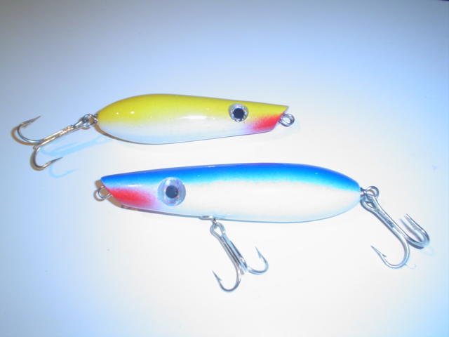 AH Rascal 6" 2-3/4oz and AH Lil' Rascal 5" 2oz. they cast a country mile and have crazy surface action. available in all my colors.