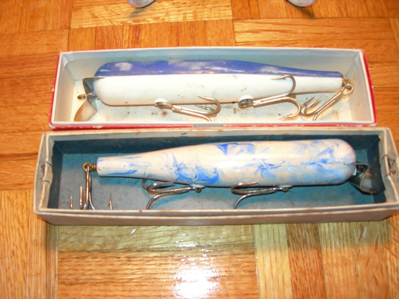 Is there a reason for the different lip shapes on these plastic atom 40's? I think the blue swirl one is older (hook hangers rather than swivels) and it has a more "Z" shaped lip. The blue over white has a lip more like the old wooden one except with the corners bent kind of like a conrad. I'm putting new hooks on these and fishing 'em.