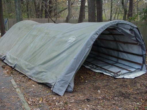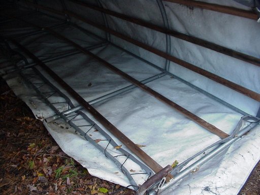 I need to be out by Dec 1st, so anyone interested better grab it this week or this weekend it's being cut up. Like I said, taking anyone of these apart is a project and a tarp over after would be required to be completely water tight, but it is what it is. I had to drag it out of it's home, so one sidehas collapsed, again some sleeves might be required to add additional support. This weekend it's being cut up, the metal going out front for the scrap guys and if anyone wants all that strapping let me know. Here are some additional pictures.