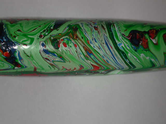 50 years ago, Pflueger painted plugs this way. It is suprisingly easy. Float a few drops of Testor paint on a dish of water, dip, and enjoy. This was an old ballerina clone I experimented with. I've still got some kinks to work out (namely the colors need to be thinned to the same bouyancy) but the possibilities look exciting and I thought some of you might want to give it a try.