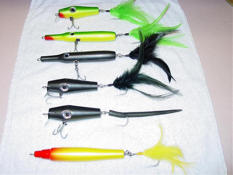 Great looking plugs. Gotta jump on the spook bandwagon...those are sweet. I don't dress mine either. As a matter of fact, sometimes I even drop the hook size one and add extra weight for less drag.