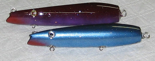 When I get back from vacation, I'll put trebles and dressed siwash's on these guys, and then get started on my next project. I have about 80 new blanks sealed and hanging to dry for a week. New stuff for me, pikies, surfsters, atom 40's, dartas, etc.