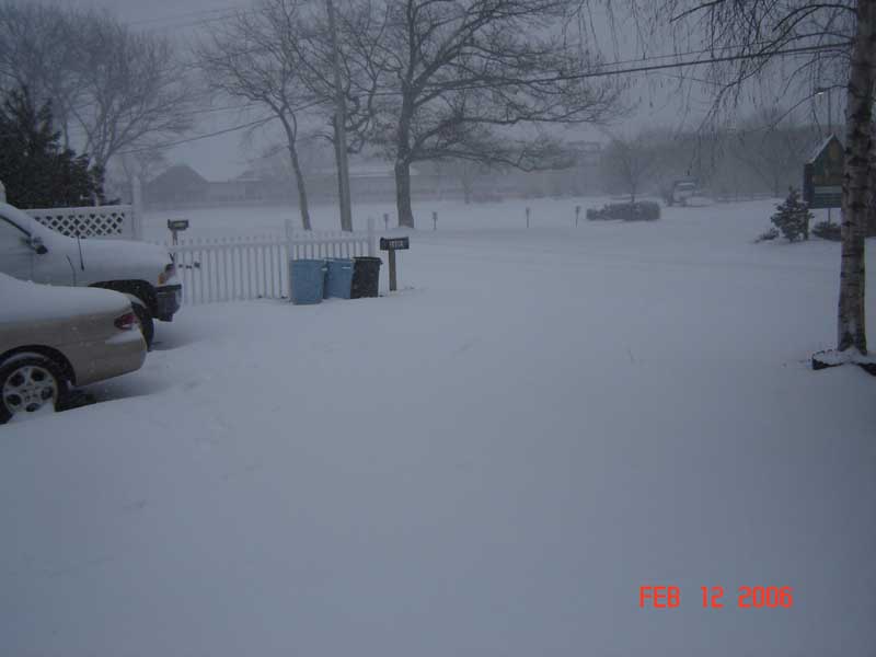 The day is young, but so far I'm very unimpressed down on the coast. I'd guesstimate 3 to 5 inches at the most, but it's tough to tell with all the drifting. Some wind but nothing major on that front either.