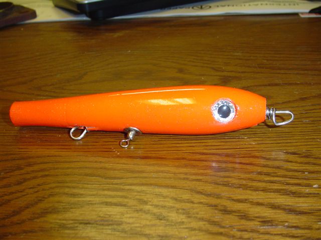 Never thought of countersinking for the grommet. That should give enough beef so it won't splinter when I do the tail wrap. I did move the tie line foward some on ones I made after this one, I did'nt have alot of fowling on the cast or retrieve, but when I hook a fish on just the tail hook it almost always fowled. Have'nt lost any fish but it's a pain to re-tie after every fish. Thanks for the help.