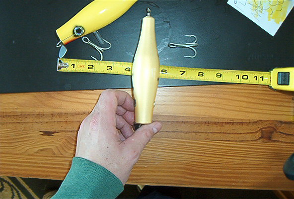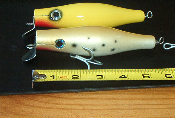 5 1/2, around 2 3/4 oz, they will have the heavy 6x 4/0 vmc's on the belly, tail will either be another big treble or a big stainless dressed siwash. I hate watching the dressed vmc's rust..