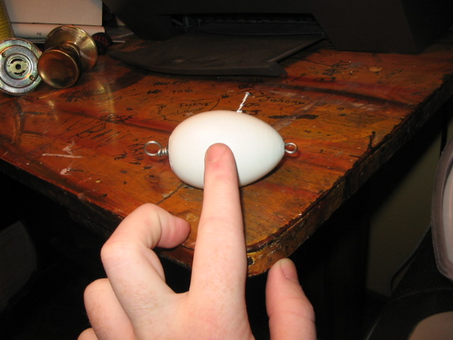 Here's a couple of screw eye eggs, the hook hanger is a piece of stainless wire stuck in a drill hole....