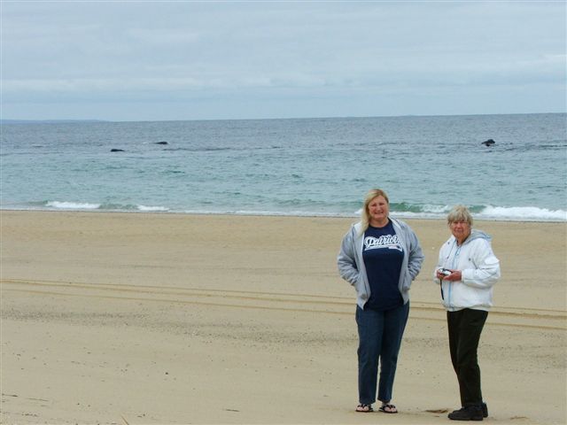 OK, with the help og www.deh.gov.au, I'll guess that they were humpbacks. V shaped blow, long pectoral fins, lumpy head, and the fluke shape. Last year at that spot, there wasn't that much water. Definately wasn't any fish. Things may have changed....Watta day!