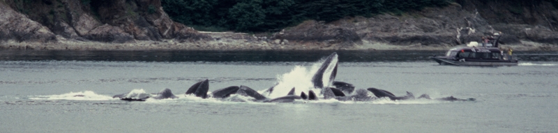 Just for the fun of it, here are some humpback photos I took in Alaska a few years back. Did I mention these things are about the size of a school bus!  There were about a dozen in this pod bubble net feeding on herring. The depth was about 300 feet.