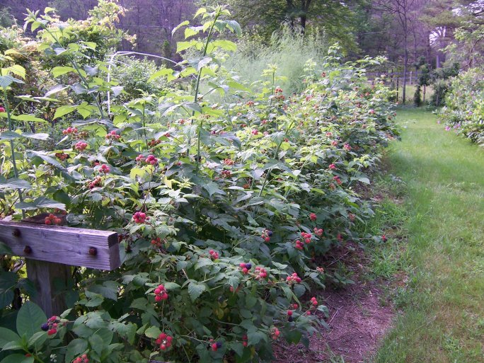 Well this rain has been good for something. I will probably have the best crop of black raspberries I have had in the 14 years I have been growing them. Most are still not ripe yet but the plants are covered. I just wish I had blueberries to go with them, damn caterpillars. I also have the best crop of weeds to go with them. P.