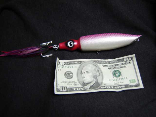 The first plug is something I have been working on for a while. i love pencil poppers and love squid. So I came up with the Squid-L-Pop. They are 6.5" long and weight about 2.5oz.