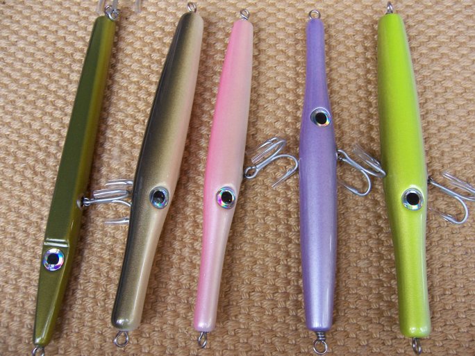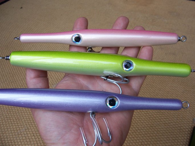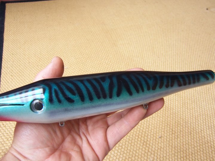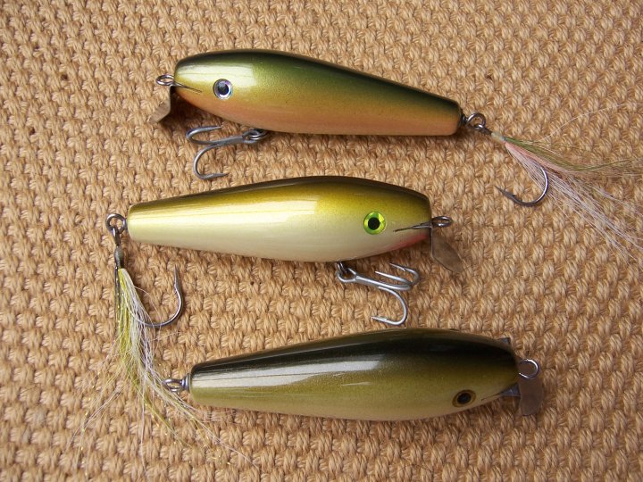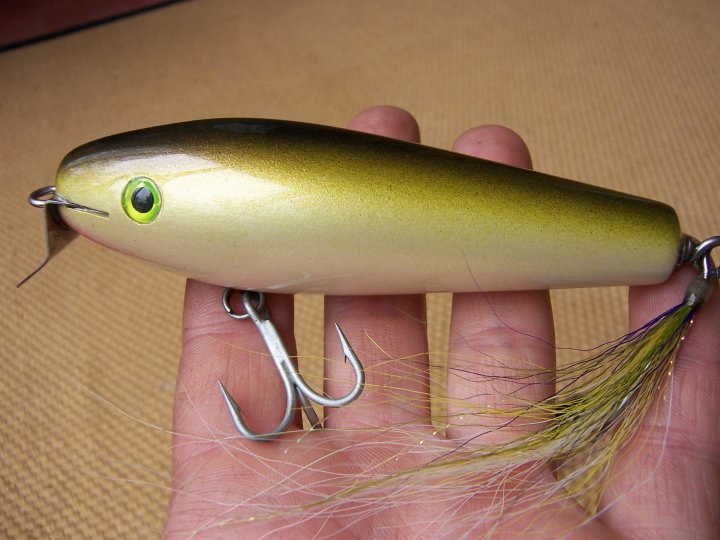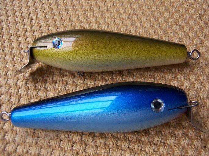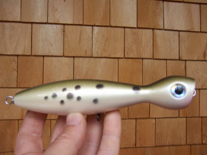 Here is my super sized gibbs trolling plug. I tried it out last weekend and it seems to swim good. I made the lip and I made the hangers out of titanium  Also my 5 year old quality control specialist, snow white herself. They don't pull and punches and tell it like it is. I only made 2 so I am now starting a bunch more, some with sloped heads, for next spring. Should be done by then. P.