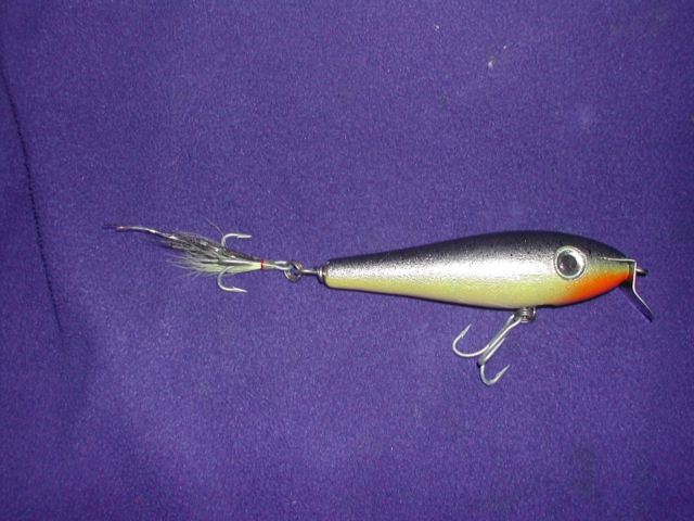 I have a feeling about this little guy.... The paint glows and sparkles! Still can't believe it came from rattle cans. Did a base coat of soft yellow belly, chartreuse sides and a purple top. Then fogged metallic silver over the entire plug. The fogged black very sparingly down the top of the plug. Then the orange chin. Came to life with the epoxy finish coat. I can't wait to fish this little baby!