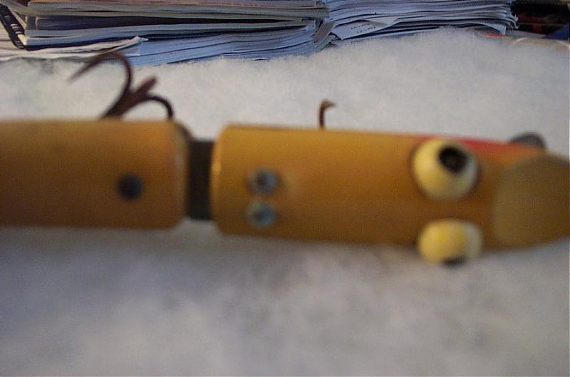 Peter Peter.  That's right I gave you back all those plugs didn't I.  I would never cut that beater up. I am looking to build the bigger trolling one. That jointed thing is very interesting. I love those eye's. Maybe a troller with a groove for a skin. Let me see a few more colors. Thanks P.
