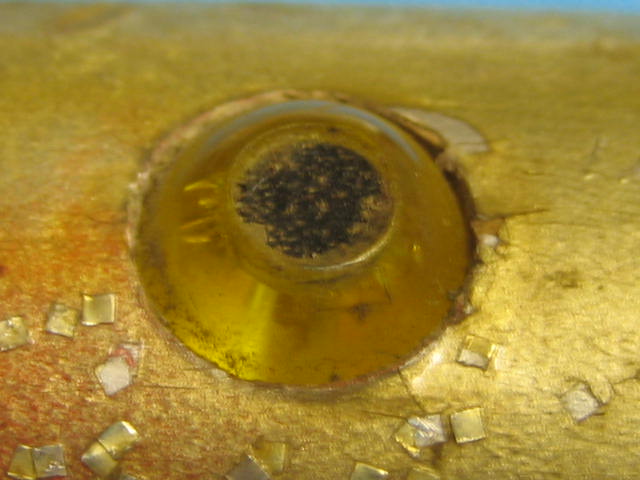 The first 2 pictures show the eye with the recessed brad head (black pupil).