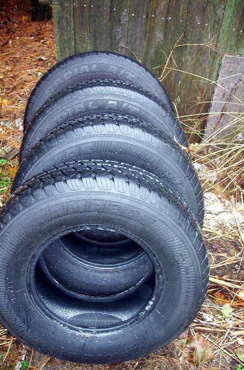 Just took them of a JIMMY this Monday.took the pic today Wensday as you can see it's raining they are P235.75R.15 they have some WEAR as you can see. BUT there are 4 of them. will swap for 2-->