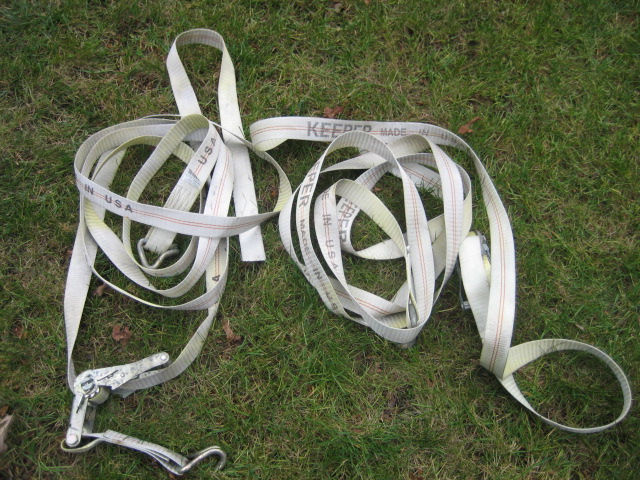 Two KEEPER tie down straps that were used to secure the boat on the trailer. They are 2" wide x 27' long and are rated for 10,000 lbs. They are 3 years old and got very little use. $35 also pick-up only. Any questions, email me at