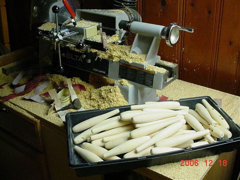 that's right about where i'm at with mine right now, All spun, drilled, Lip-slots and Eyes. Glued the weights in last night so I can hit'em with some wood putty tonight. Hope to have them sealed by the weekend.