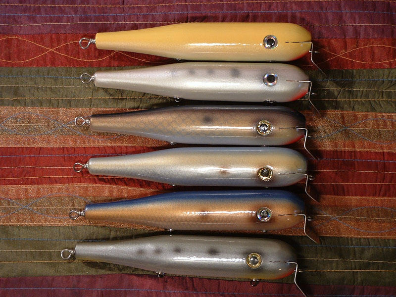 Atom 40 style swimmers. Not an exact copy, but I worked really hard prototyping this plug, I had a few originals and a Beachmaster to test it against... I really think these swim better than all others I tested... they swim with a tight wiggle and can be "waked" right on top or fished down to about 1ft below the surface. I can't stress enough how well these swim.