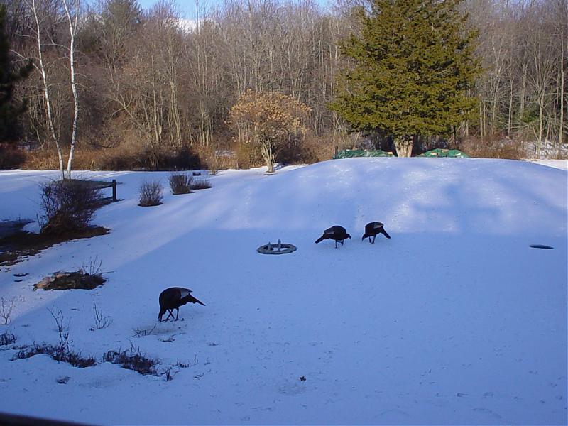 they come and go so fast....  eating the bread i threw out there for the bluejays.... so for you turkey hunters..... here's what i just saw.