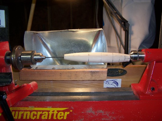 If I'm using the lathe, I dont even bother, I can run the 6" bit through from each end and meet every time, the key is slow to moderate drill speed and clearing the chips...