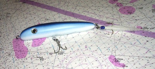 NO.4 of 8, again 7"long 3/4 molded eyes, 1.5ss screw eyes,100lb split rings, rattle can painted.