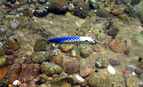 I took the SLAMMERS swimming,TODAY. here is a couple of pic's of them sitting in the water, thanks to NUMBSKULL for the info on them. I used BARREL WEIGHTS 2 of em, cast an swim great. now I going to do a few more in different colors.