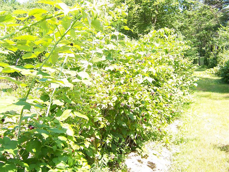 The black raspberries are in full swing now, I don't bother covering them as the birds need to eat too and it keeps them from the blu berries. 2nd photo is of my thornless blackberries which have a few weeks to go but look to be loaded and well over 10' high. They are a very soft and sweet fruit but don't ship well so if you buy them at the store they are usually not allowed to ripen fully because they need to be firm to ship or result in squashed fruit so they are never as sweet as ones that are left on plant till last possible second. These rarely make it to the fridge as we eat them as we pick em.