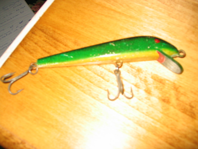 Anyone on the minnow bait? I thought I saw something like this in the past attributed to Stan Gibbs....slot cut for plastic lip and painted over....was in a bag with mostly other Gibbs... some little dannies, darters, and a tiny polaris....